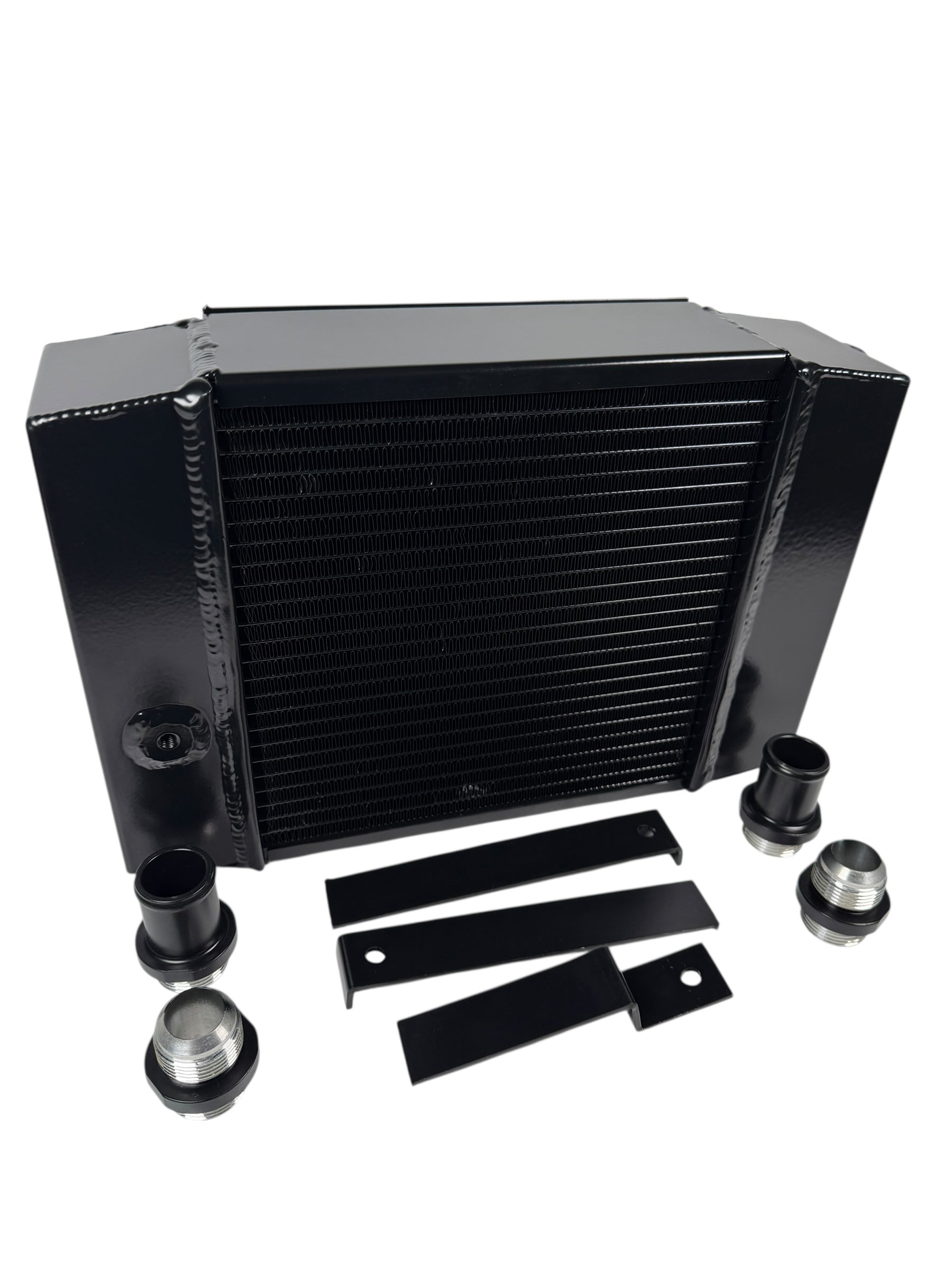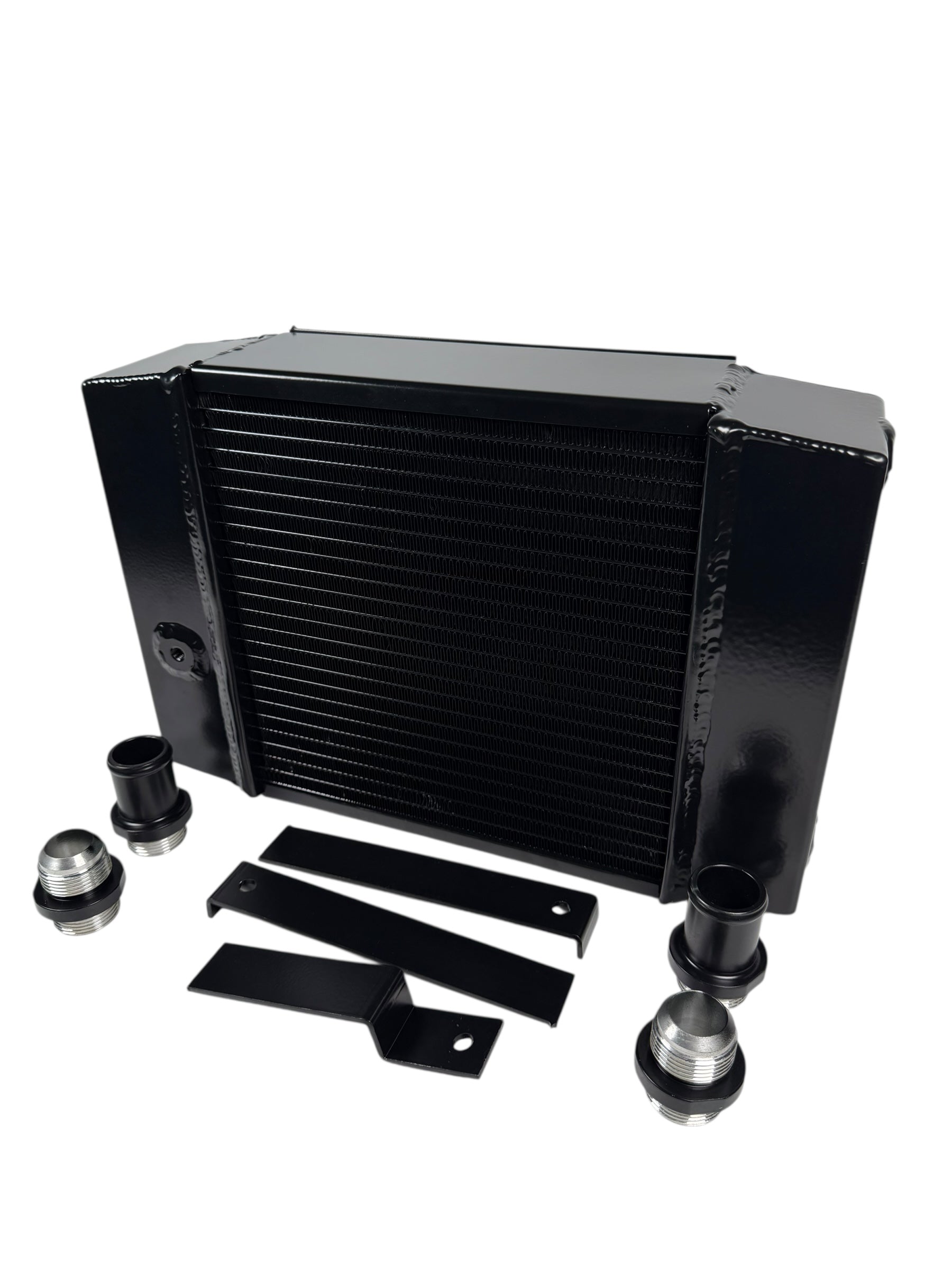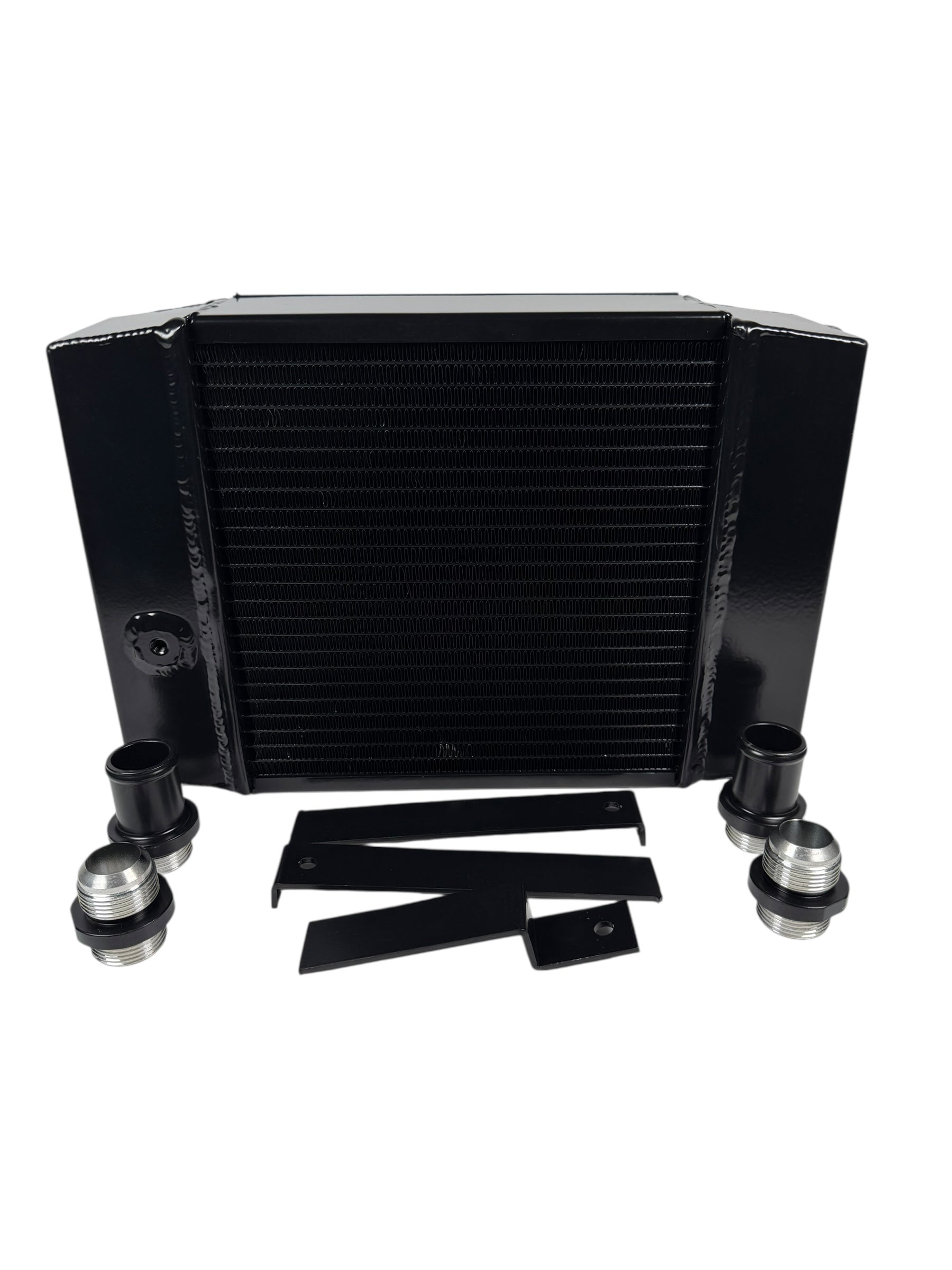 - Includes 1.25" slip-on fittings for factory hoses and -16AN inlet and outlet connections